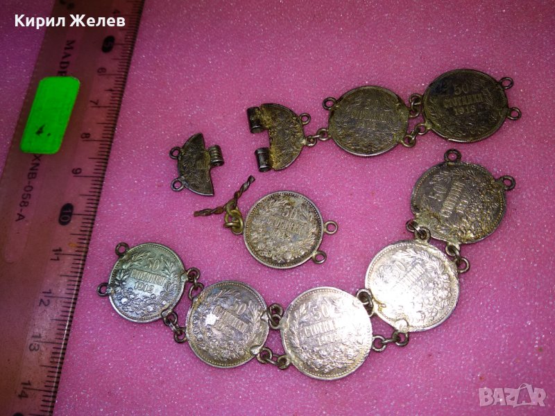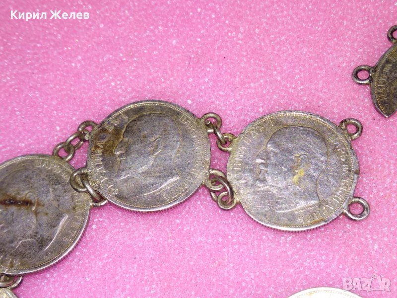 СТАРИННА СРЕБЪРНА ГРИВНА със СРЕБЪРНИ МОНЕТИ на ЦАР ФЕРДИНАНД I Царство БЪЛГАРИЯ РЪЧНА РАБОТА 43081