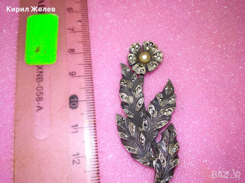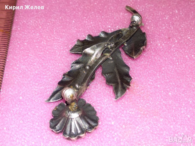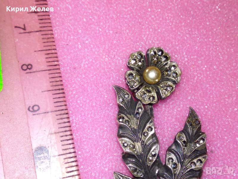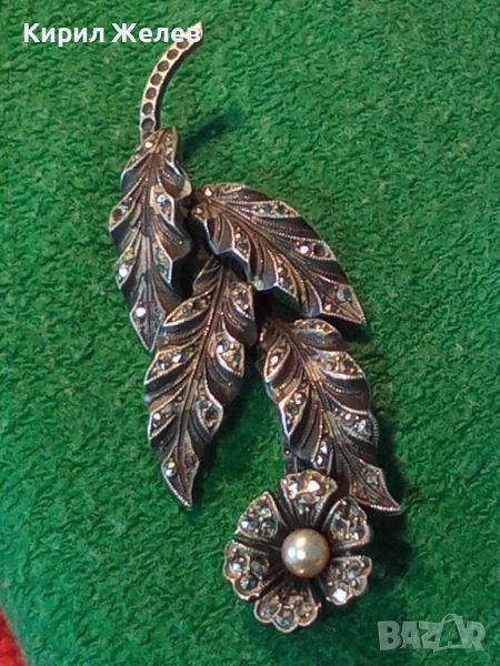 СТАРИННА СРЕБЪРНА БРОШКА ОКСИДИРАНО СРЕБРО с ПЕРЛА и МАРКАЗИТИ / НУЖДАЕ се от НОВА ИГЛА ОТЗАД! 43364