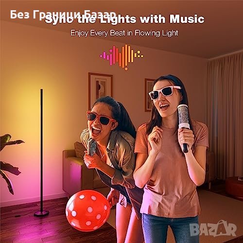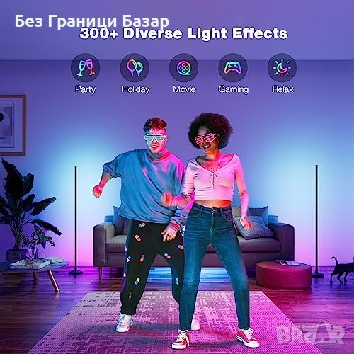 LED Подова Лампа с Разнообразие от Цветове: 3 светлинни тръби, 16 милиона цветови опции и над 300 режима на осветление.