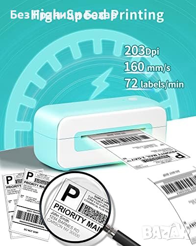 Бърза скорост на печат: Високоскоростен печат до 180mm/сек, около 72 етикета в минута.