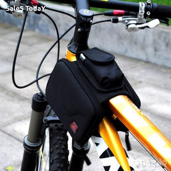 Чантата е с компактен дизайн,който въпреки това предлага удобно съхранение на вашите вещи.Модела се поставя върху рамката на колелото като обхваща и двете й страни.Най отгоре има специално отделение за вашето мобилно устройство.Със стабилни каишки с велкро лепенки.Изработена от водоустойчив твърд материал.Стилен и практичен тъмно сив цвят.