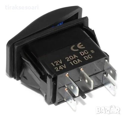 Копче, Бутон, За Вграждане, Моментен, Самовъзвратен, за Лебедка, Макара, Повдигач, 12V - 24V, Надпис "WINCH", Синя Светлина