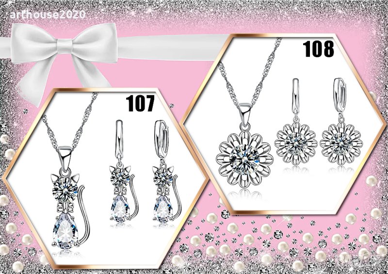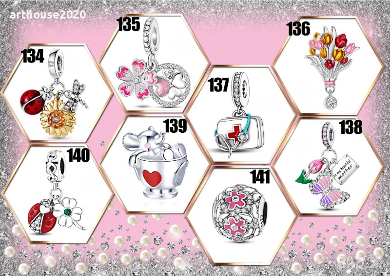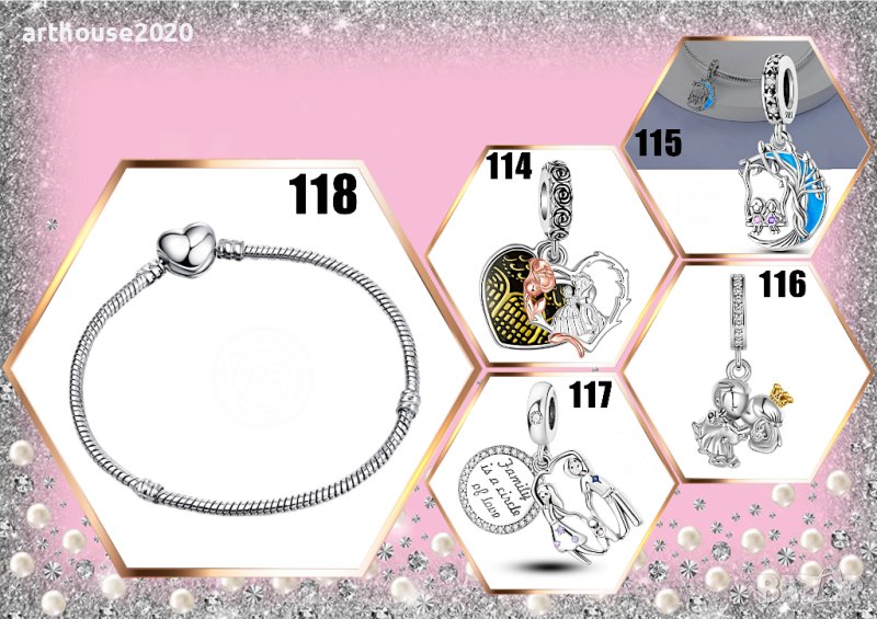 Бижутата са с много добра изработка-нежни и изящни.Снимки 2-5:комплект колие с обеци S925,циркон.Цена:39,90лв.Снимки 6-8:гривни и талисмани тип Пандора S925,прецизна изработка.Цена гривни:24,90лв.;талисмани:19,90лв.Снимка 9:гривна и талисмани,сребърна баня,с печат.Цена гривни:14,90лв.;талисмани:12,90лв.Снимка 10: обеци S925,циркон.Цена:19,90лв.Снимка 11:Комплекти от бижутерска,неръждаема сплав;красива изработкаЦена: к-кт "Еднорог"-16,90лв.к-кт "Коте"-12,90 лв.Можете да добавите персонализиран талисман от медицинска стомана,с Ваша снимка,на цена 14,99/бр.Не се колебайте да се свържете с нас!Ще получите индивидуално отношение,качество и коректност.