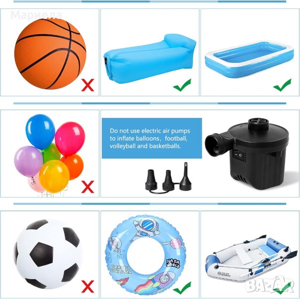 Имат 3 приставки в различни размери и следователно е подходяща за повечето надуваеми предмети . Може да се използва не само за надуване , но и за спадане . В сравнение с други електрически въздушни помпи, тя спестява много време и ви оставя повече време за игра със семейството или приятелите ви.