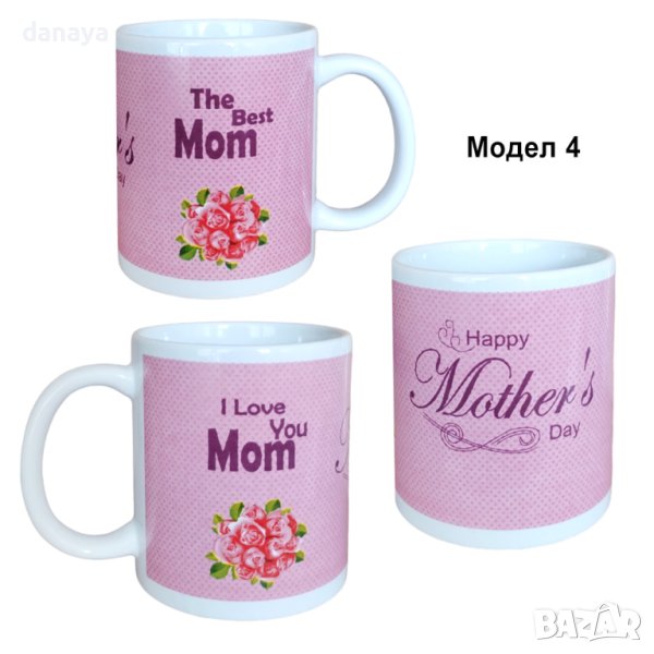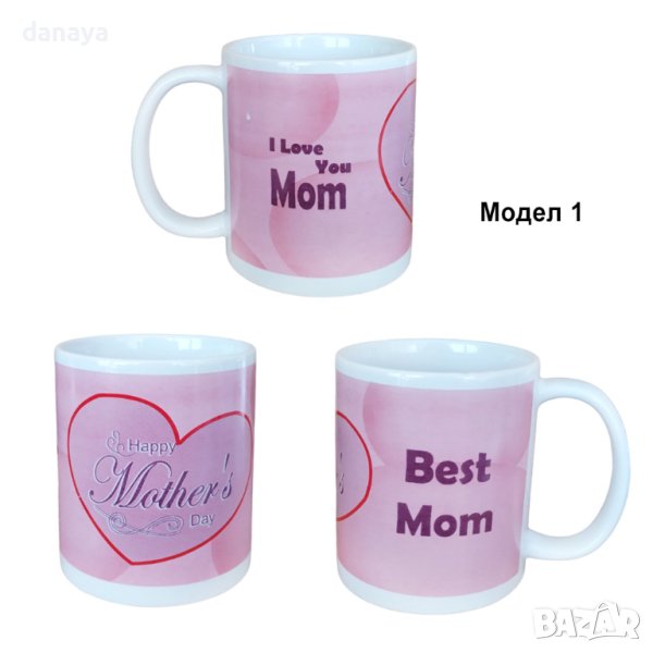 Чаша 8 Март, подарък за мама. Керамична чаша за чай с надпис отпред “I Love You Mom”, а на задната страна е изписано “Best Mom”. Един красив и нежен подарък за Осми Март – празникът на жената. Чаша подарък за мама. Чашите се предлагат в 4 красиви модела.