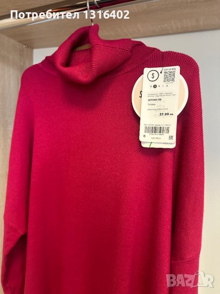 Ново поло с етикет “Orsay”, цвят малина, с паднал ръкав, размер S,но би стояло добре и за М, материя вискоза и полиамид. Ширина под мишници 58см, дължина 60см, талия 46см. Купувано за 37,99лв.
