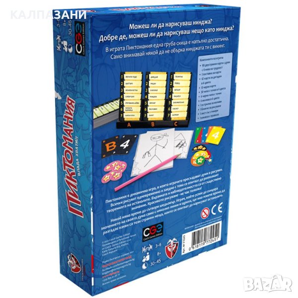 Пиктомания е парти игра, в която нямате време много да му мислите! В нея всеки участник получава произволна дума, чийто смисъл трябва да предаде на останалите... рисувайки. Или скицирайки. Или драскайки нещо там. Едновременно с това ще трябва също и да познава това, което "рисуват" останалите. Точно така. Всички рисуват и познават едновременно! Не се притеснявайте. Това е много повече смешно, отколкото напрягащо. Само внимавайте, защото картите с думи са подбрани така, че да ви объркат максимално!