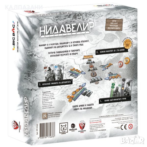 Всеки ход в Нидавелир залагате по една монета във всяка кръчма. След разкриването на залозите в низходящ ред избирате по един персонаж, който добавяте към вашата армия. Всеки клас джудже има свой собствен начин на точкуване: ковач, ловец, воин, изследовател и миньор. Разумният подбор ще ви помогне да привлечете мощен герой към армията си. Също така ще можете да увеличите стойността на вашите златни монети чрез интелигентната система за трансформиране и да получите предимство пред останалите. Елваландецът, събрал армията с най-голяма храброст, ще има честта да се изправи срещу дракона и ще бъде провъзгласен за победител.
