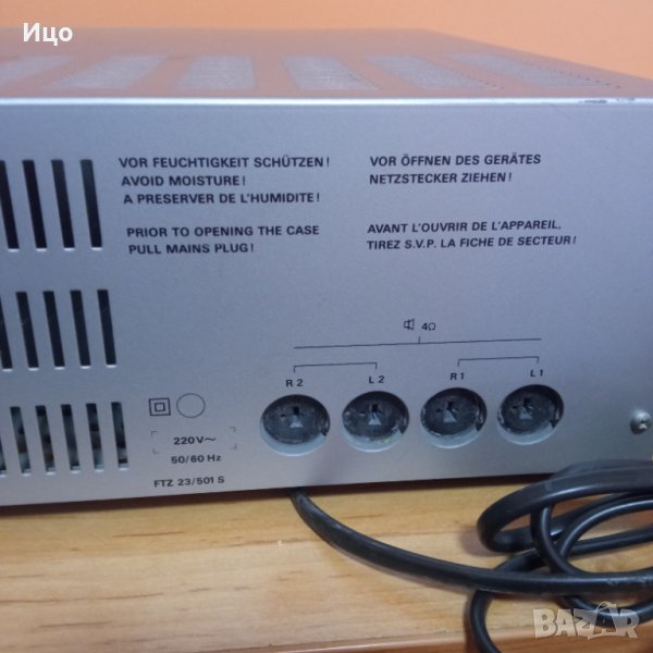 Стерео транзисторен усилвател от 1984г.2/50 вата при 4ома.Диодна индикация на усилването и входовете.Изходи за 4 колони.Яка машина в много добър външен вид и отлично техническо състояние.тежи 8,5 кг.Предпочитам тест и лично предаване.
