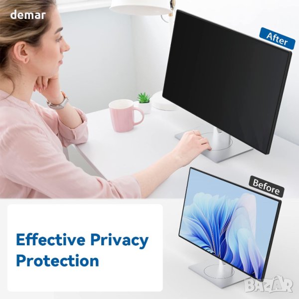 Антишпионски компютърен екран за поверителност, предназначен за 21,5-инчови монитори, съвместим с различни марки, включително HP, Dell, Acer и други. Изработен от първокласни японски PET материали с усъвършенствана оптична технология, той осигурява подобрена поверителност и качество на картината с висока разделителна способност, като предлага ясен изглед отпред, като същевременно прикрива страничните ъгли (ъгъл срещу надникване: 30°-60°). Реверсивната инсталация на матова/гланцирана повърхност отнема само 20 секунди, с опции за несменяеми лепилни ленти или подвижни плъзгащи се пластини за монтиране, подходящи за различни рамки на монитора. Възползвайте се от функциите против синя светлина и против отблясъци, намалявайки отблясъците с 96% и филтрирайки 95% от синята и UV светлина, без да компрометирате яркостта на екрана. Миещ се и устойчив на надраскване, той е идеален за обществени зони, допълнен с два екрана за поверителност, аксесоари за монтаж и комплекти за почистване за цялостно решение.