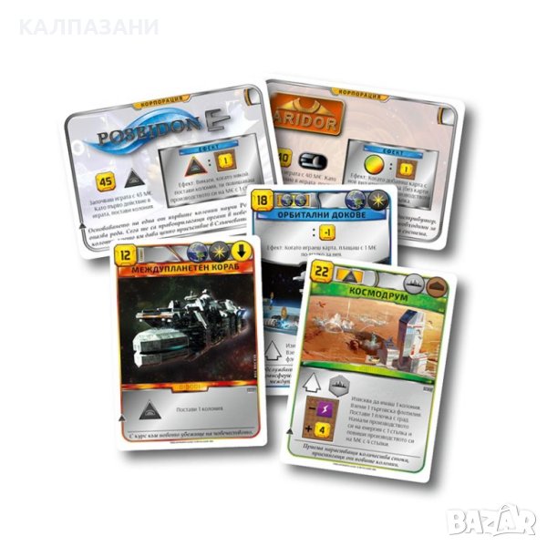 В Колонии вие ще посещавате луни и планети от външната Слънчева система. Разширението включва специални плочки с локации, където ще строите колонии, и ще изпращате търговските си кораби. Кутията съдържа също и нови корпорации и проекти.