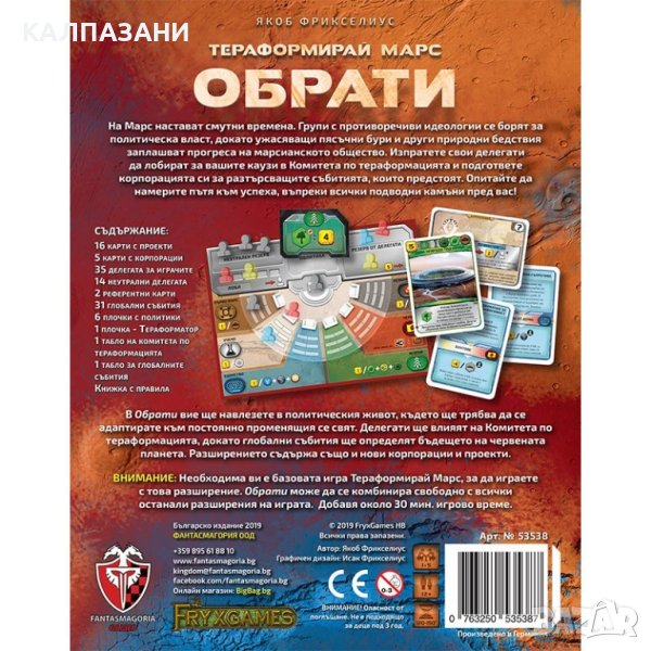 Тераформирай Марс ви отвежда 400 години в бъдещето, когато човечеството започва масивната кампания по култивиране на Марс. В играта вие сте начело на мултимилионна корпорация, която, заедно с останалите такива, подобрява три показателя, от които зависи животът на Червената планета, като едновременно с това се състезавате за точки. С разширението Обрати вие ще вземете участие в политиката, където делегати ще влияят на Комитета по тераформацията и ще трябва да се адаптирате към постоянните промени, въведени чрез глобалните събития. Също така получавате и нови корпорации и проекти.