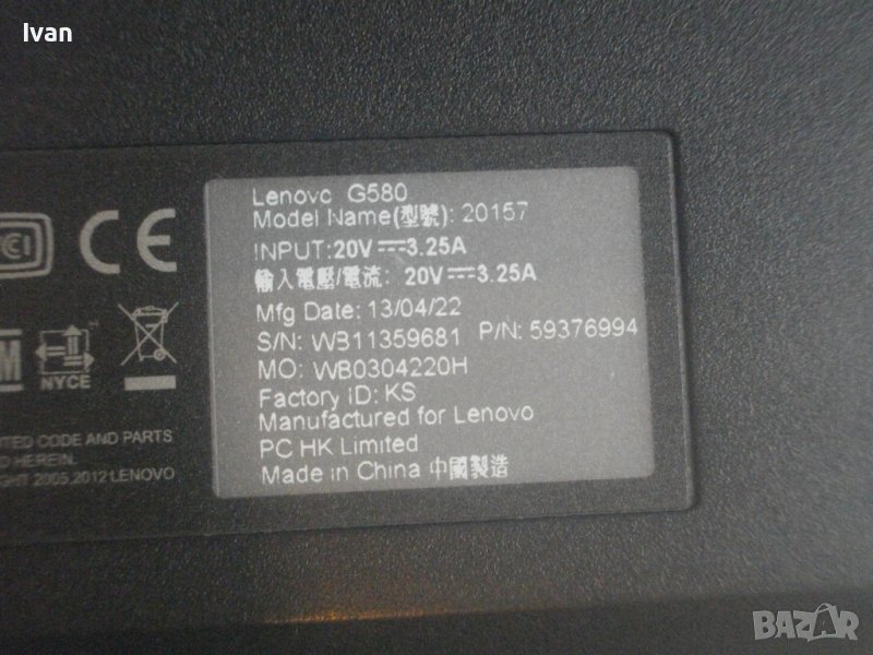 Цена на лаптопа Lenovo G 585 с оригинални чанта и зарядно - 479 лв.