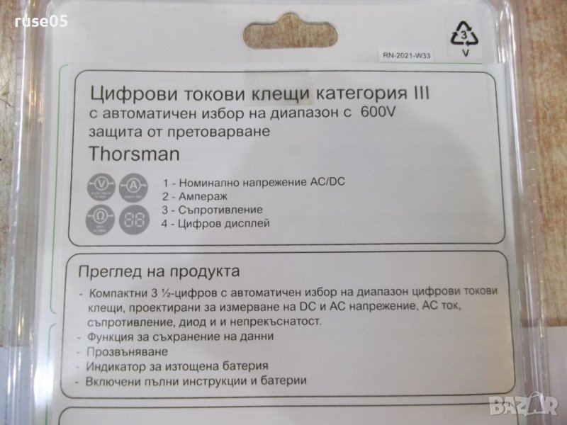 - Амперклещите "IMT23214 Thorsman" са иновативен уред с функции , които позволяват на потребителите да работят удобно , без да имат обширни познания в областта на електрониката и електротехниката . Амперклещите са идеален инструмент за домакинства , любители и електротехници . Служат за интелигентно измерване големината на токa в електрически инсталации . Токовите клещи измерват още величини като AC/DC напрежение , съпротивление , тест на диод и изпитване на непрекъснатост .