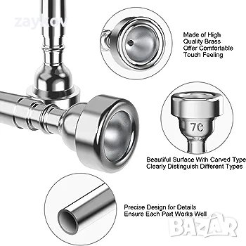 тромпета работи добре. Съвместим с повечето стандартни тромпети като Yamaha, Bach, Conn, King, както и Yamaha, King и др. Перфектен подарък за начинаещи свиричи на тромпет, професионални свиричи, деца и възрастни.