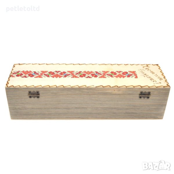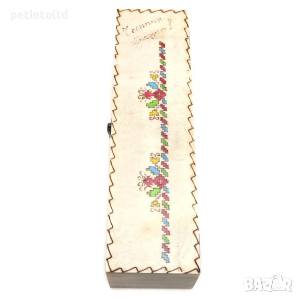 Дървени кутии за бутилка с вино - с традициионни български шевици ( цената е за комплект от 5 бр )