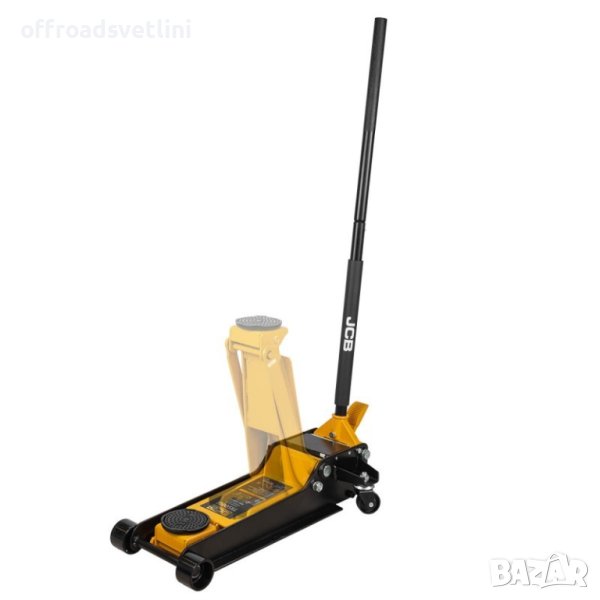 Професионален сервизен крик на марката JCB с товароподемност 5т с 2 помпи усилена конструкция , крикът е снабден с педал за бързо повдигане .