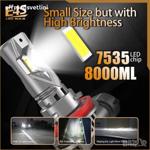 Комплект от 2 броя Умалени Мини Лед Led Диодни Крушки E4P H11 Х11 12V 200W 16000lm за Автомобил Мотоциклет Трактор Камион Бус и др.