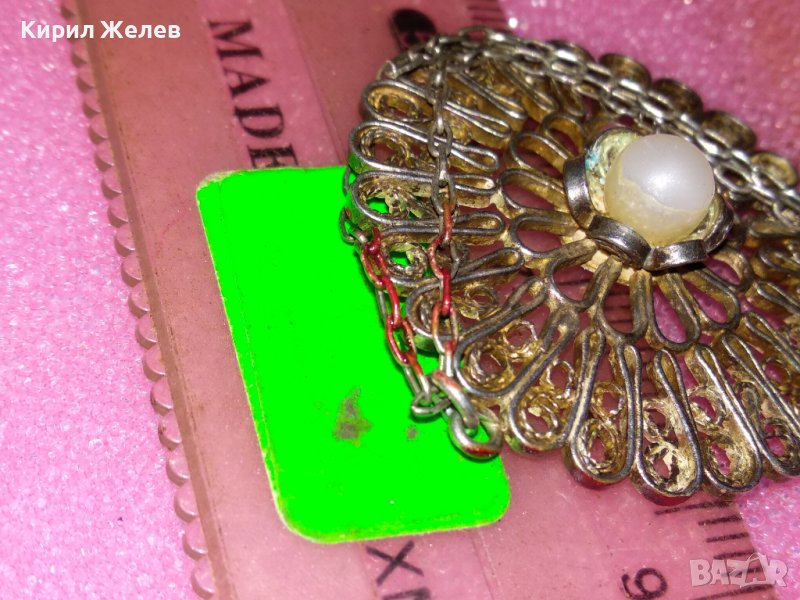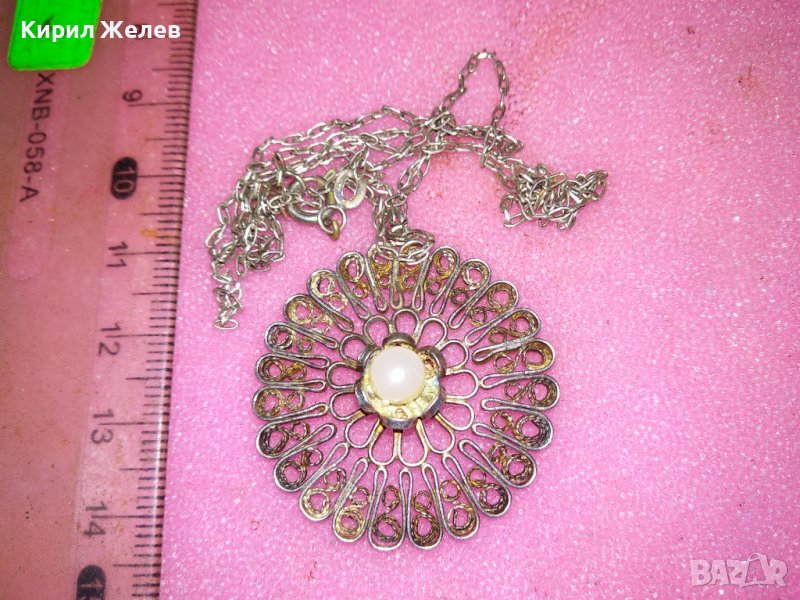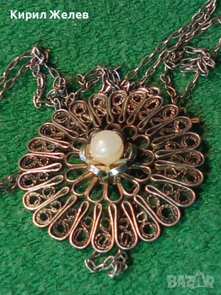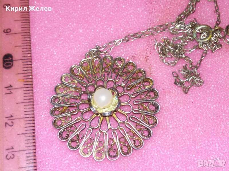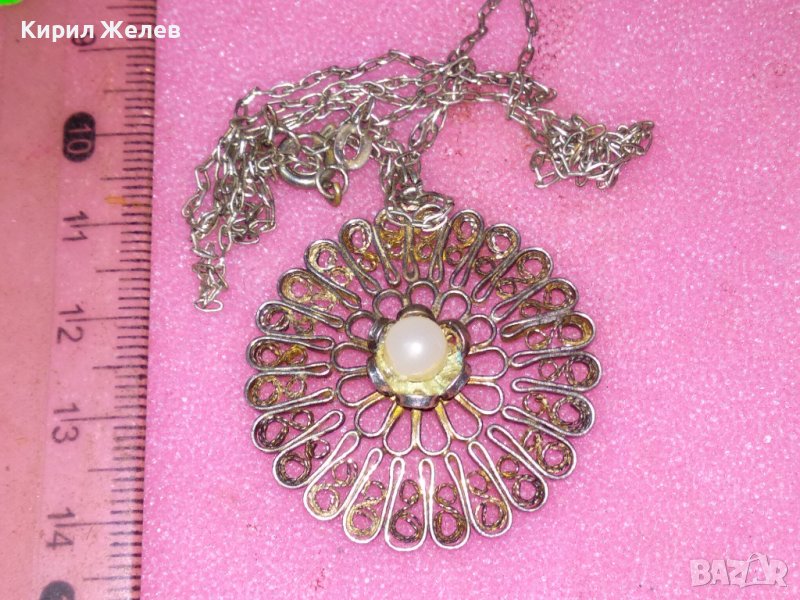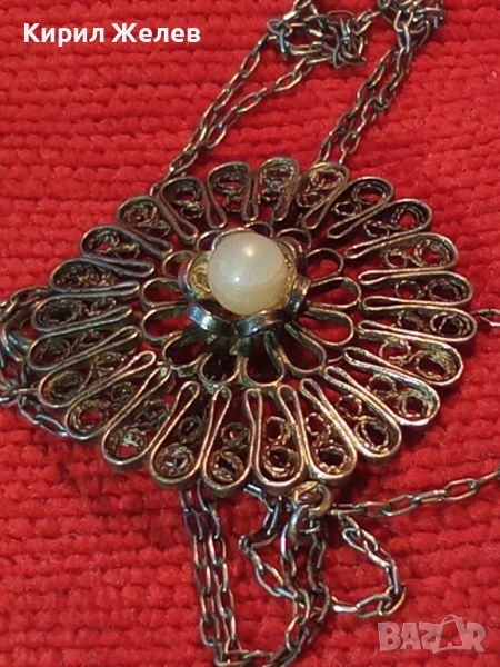 СТАРИНЕН ФИЛИГРАНЕН СРЕБЪРЕН МЕДАЛЬОН с ПЕРЛА и СРЕБЪРНА ВЕРИЖКА - СРЕБРО ВИСОКА ПРОБА 41899