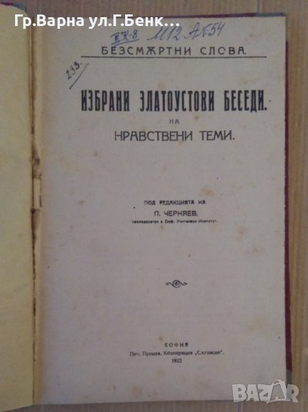 Избрани златоустови беседи на нравствени теми 1922г 61 стр.
