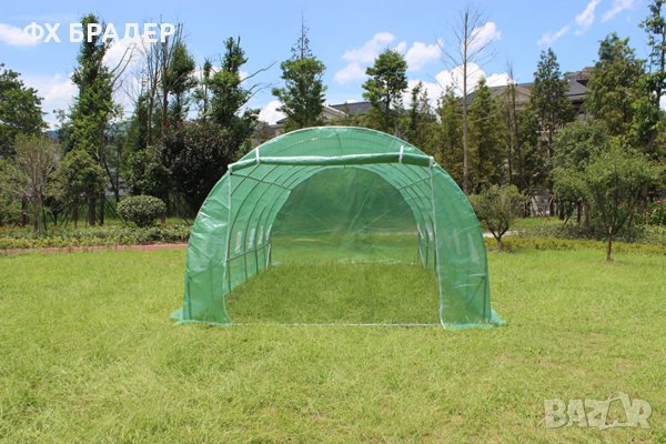 24кв.м Оранжерия тунелна 8x3x2м PREMIUM с подарък покривало с 2 врати и 16 прозореца