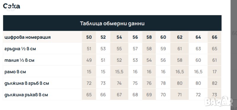 Подходящо е за фигура около 180 см височина и тегло 90 кг. Голямо е за манекена, на който е снимано, затова стои леко провиснало.