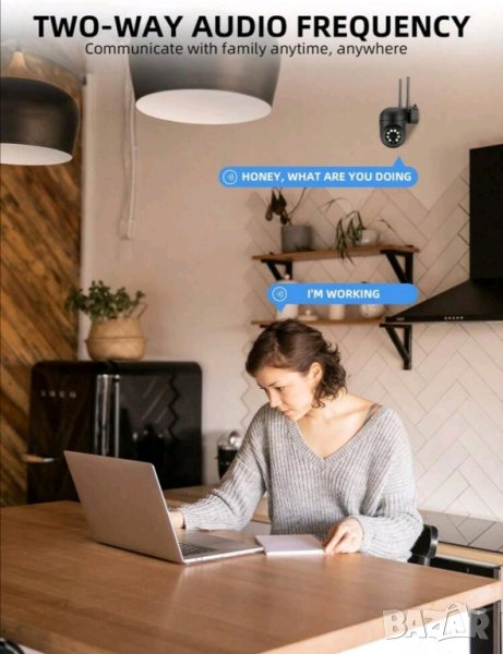 – Двупосочно аудио: Вече без значение колко далеч сте, можете лесно да говорите през WIFI IP камерата, дори и да не сте у дома.
