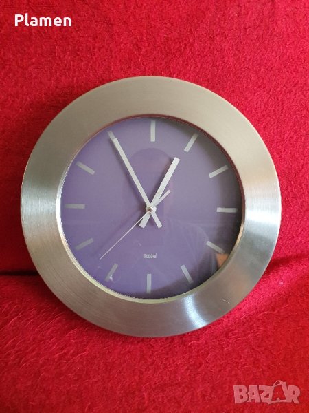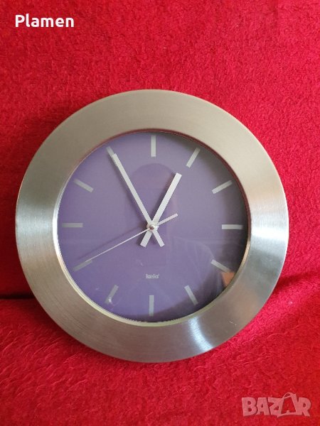 Стенен часовник 30см диаметър лилаво и сиво с бели стрелки.С цъкашт механизам може да го наравя с плавен и бешумен за още 5лв.