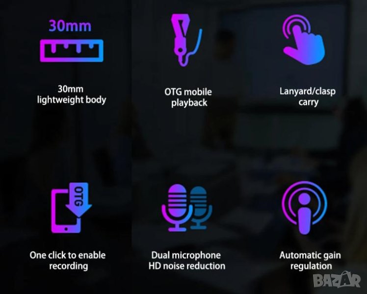 Чрез него може да се записват при нужда всякакви важни лични или делови разговори, бизнес срещи, собствени гласови бележки, лекции, интервюта и др. Това ще ви помогне за набавяне на неоспорими доказателства в бъдещи спорове или опити за опровергаване на изказани думи, мнения, съвети или твърдения.
