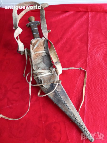 Стар Голям Етиопски Кинджал Афар , ДЖИЛЕ , Кама с Оригиналния си Кожен Калъф от Кожа.
