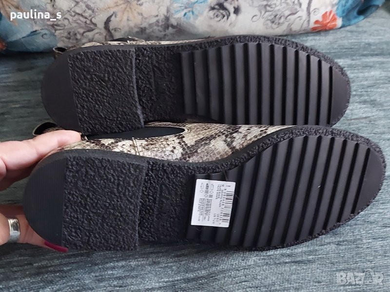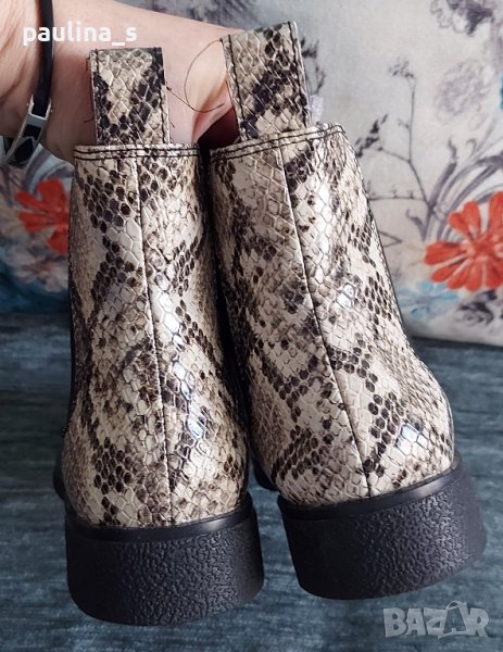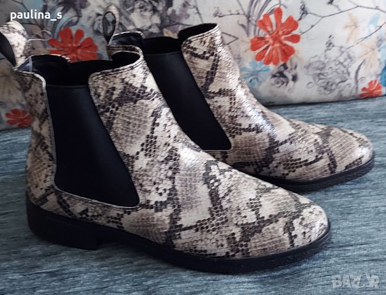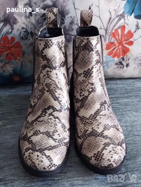 Clarks". Уникални маркови боти в змийски принт, една бройка са, неуспешна онлайн покупка. Цената е крайна 119,99лв / 60 евро. Моделът се вижда добре. Нови са. Номер 38,5 / 39. Стелка 25,5см / ширина 8см / глезен 11см едностранно - има ластици и се напаства / височина 12см