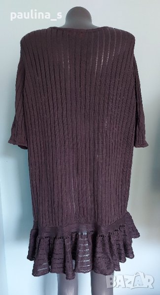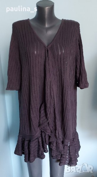 1. XL / 4XL - "Sheego". Цената е крайна 39,99лв. Мрежеста жилетка тип наметка / жилетка с къдри. Преждата е мека - памук и полиестер, приятна за допир до кожата, изглежда разкроен модел, голям размер. Нова е, без дефекти и етикет, неутрален цвят, подходящ за всичко. Закопчаването отпред е със секретно копченце.