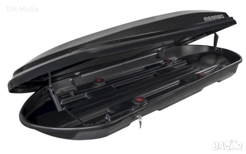 Автобокс Menabo Mania DUO със страхотна аеродинамична форма, стилен цвят и обем от 580 литра, за да побере целия ви багаж.