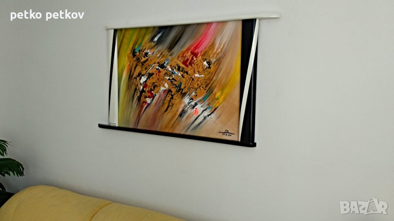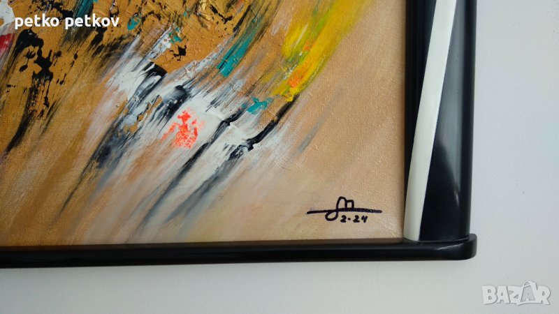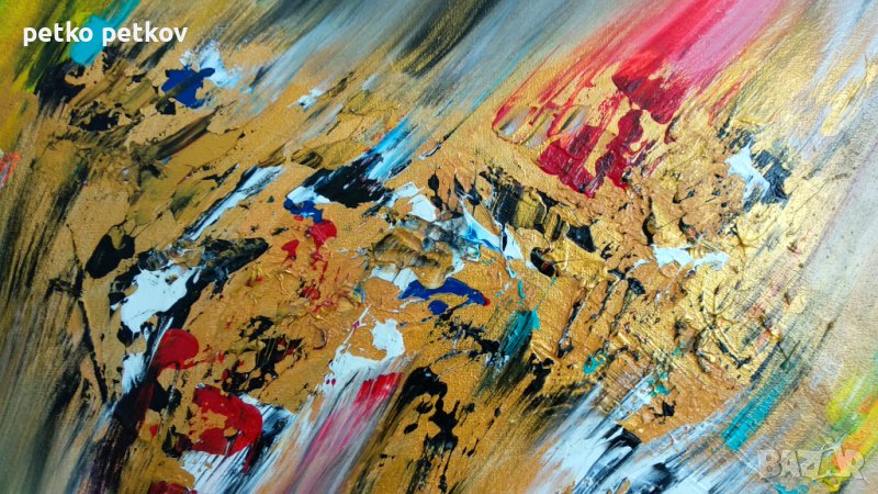 Акрил върху платно. Преобладаващ златен цвят. Релефна. Собствено производство дървена рамка-уникат. Размери 110/60 см.