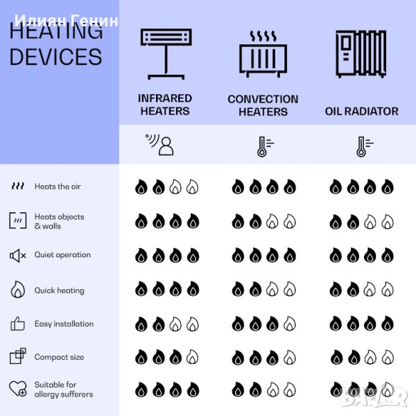 Режим на работа: лъчиста топлина (инфрачервен лъчист нагревател) / конвекция