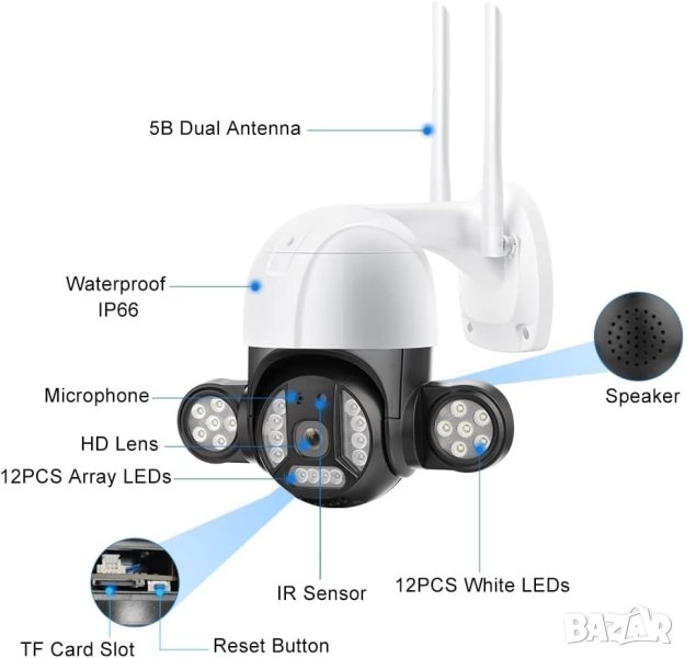 5 МП Камера с 2 фенера ICSEE WIFI IP CAMERA INFRARED ВЪНШНА ОХРАНИТЕЛНА КАМЕРА V380