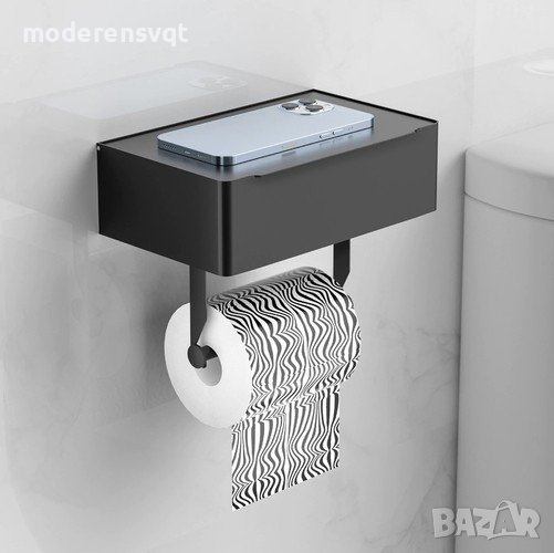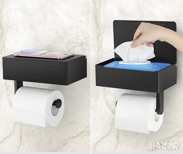 Държачът за тоалетна хартия със заключващ рафт за мокри кърпички има двуслойна структура - кутия за съхранение на мокри кърпички или дамски продукти и поставка за тоалетна хартия отдолу.