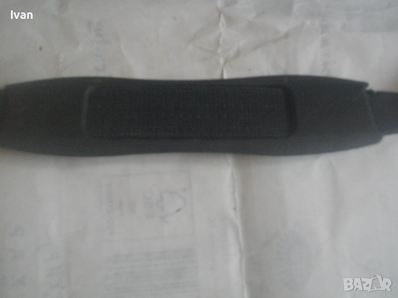 Дръжка от същия черен брезентов плат и раменна презрамка регулируема за носене прз рамо.