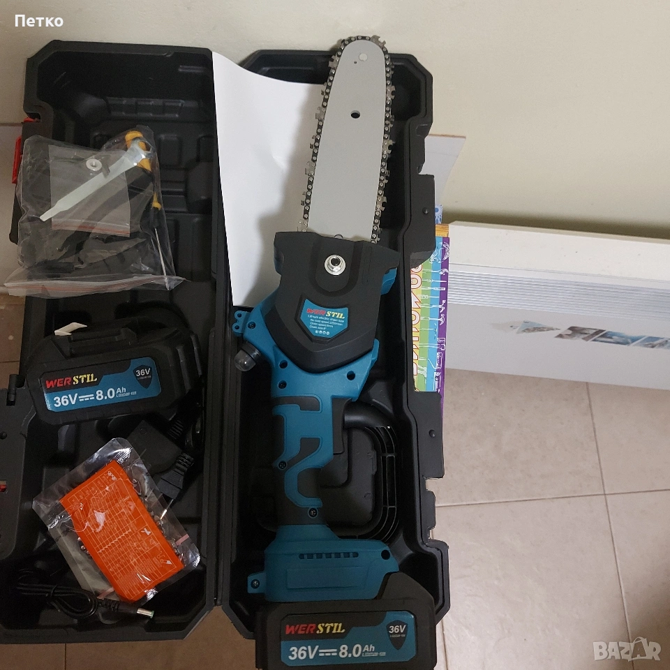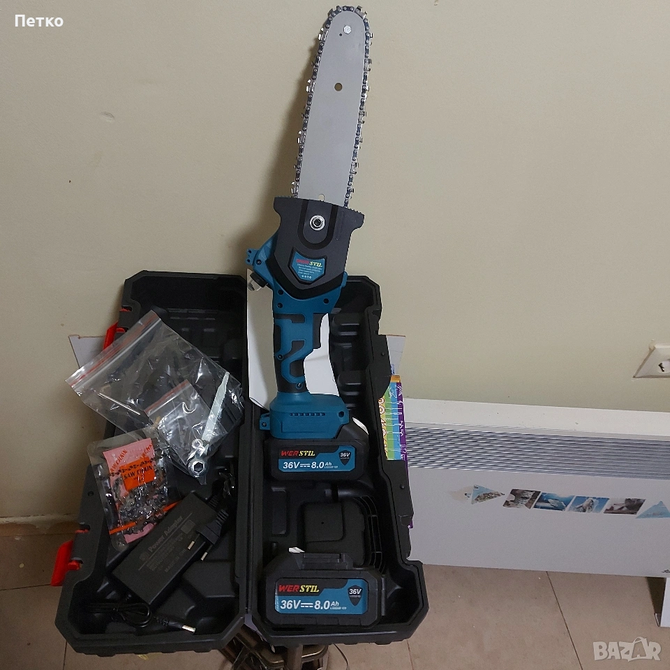 Кастрачка за клони с 8 инча шина ,две батерий и зарядно.