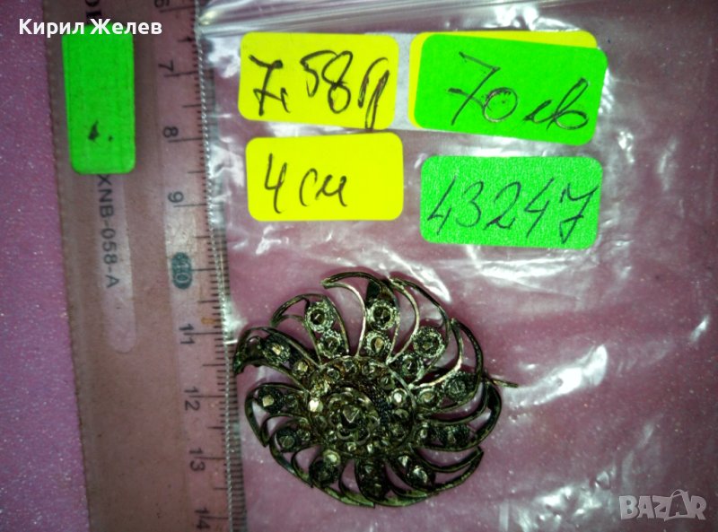 СТАРИННА СКЪПОЦЕННА ВЪЗРОЖДЕНСКА ФИЛИГРАННА СРЕБЪРНА БРОШКА ВИСОКА ПРОБА СРЕБРО с МАРКАЗИТИ 43274