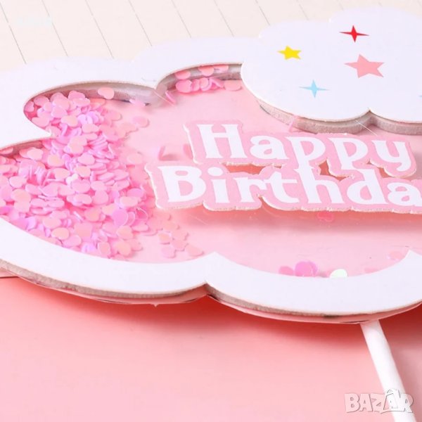 Дъга Happy Birthday с облак и конфети картонен топер украса декор за торта → Обява 44424212