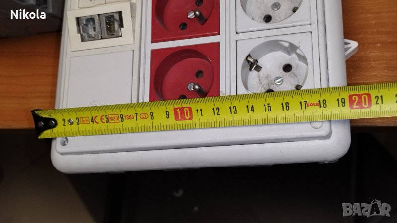 4) Един модула с 8 гнезда за външен открит монтаж като, е обурудвана шест контакта и цетири или две компютърна розетка R& M - FTP 5E. Външен размер на кутията 25/15/8см. Цена за един комплект 65 лв
