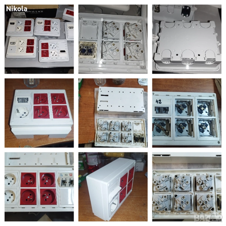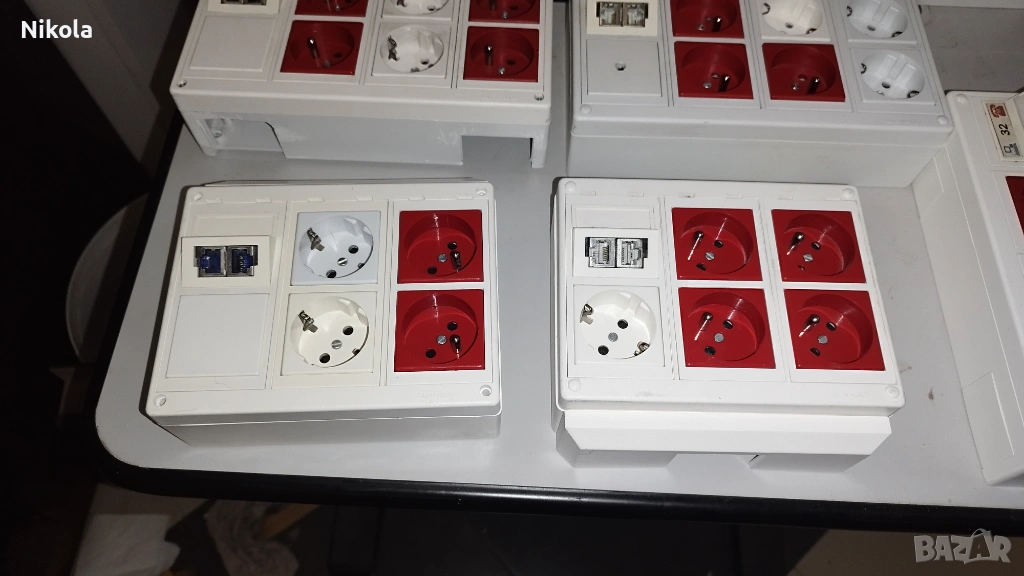 Продавам 14 бр Модулени ел. панели за контакти (кутии) с контакти и компютърни розетки R& M - FTP C6 и 5E категория. Кутиите и обурудването е на Cimabox- испанска фирма както системата Legrand Mosaik Всичко е използбано но е здраво и работещо. Имам: