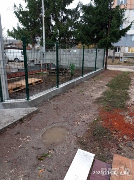 оградни пана, колове, врати, портали, плетена мрежа с декорация - жив плет.