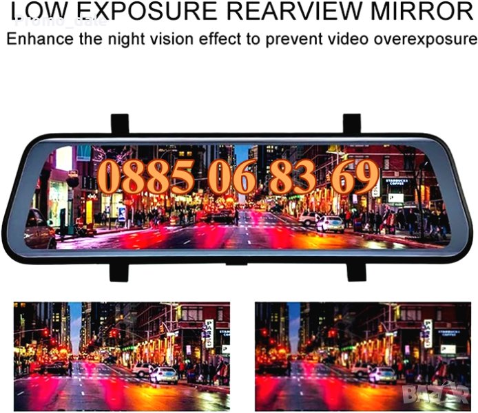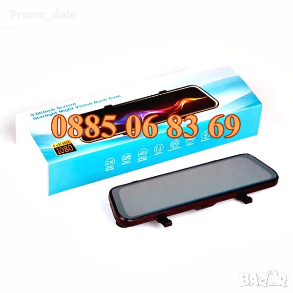 Видеорегистратор огледало, с две камери FULL HD, дисплей 9.66 инча