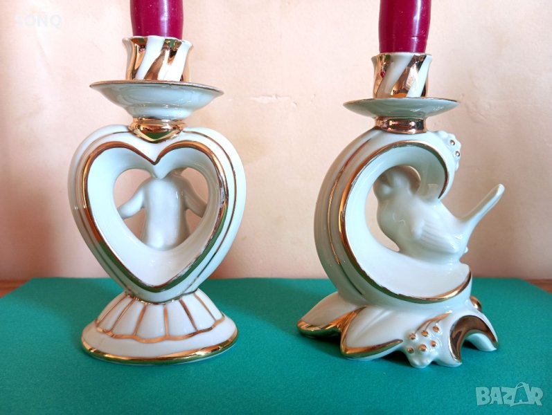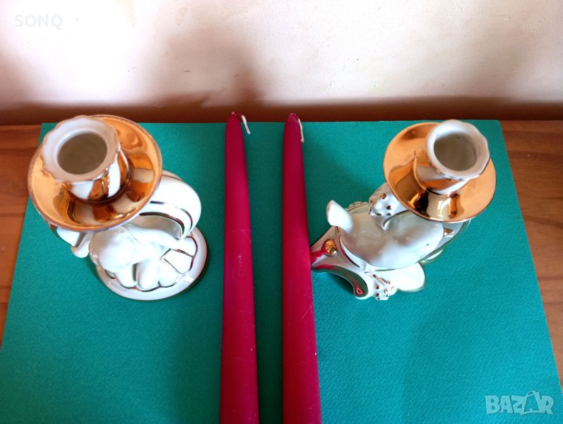 Прекрасна порцеланова изработка. Мисля,че не са ползвани. Свещите са подарък от мен. Само за ценители.