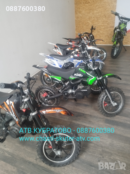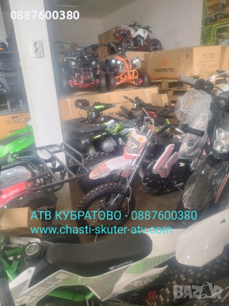 АТВ КУБРАТОВО и NITRO MOTORS, ексклузивен вносител за България ви предлагат АТВта и Кросови мотори в богат АСОРТИМЕНТ от НАД 50 МОДЕЛА НАЛИЧНИ на склад в КУБРАТОВО на цени без конкуренция от 550лв до 4500лв с ДДС и покритие на всички възрастови категории: деца, юноши, възрастни, родител+дете и двуместни АТВта за възрастни!
