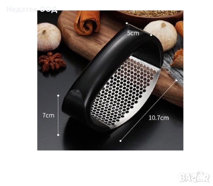 Преса за чесън от метал с пластмасова черна ергономична дръжка.Намачкайте скилидките лесно, без да ги докосвате, за да избегнете неприятната и упорита миризма, която оставя върху ръцете.Колкото пъти преместите пресата върху скилидките, толкова по-разтопен ще бъде чесънът.Количеството се събира лесно с нож.Лесно се изплаква и почиства.
