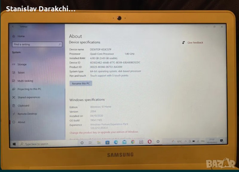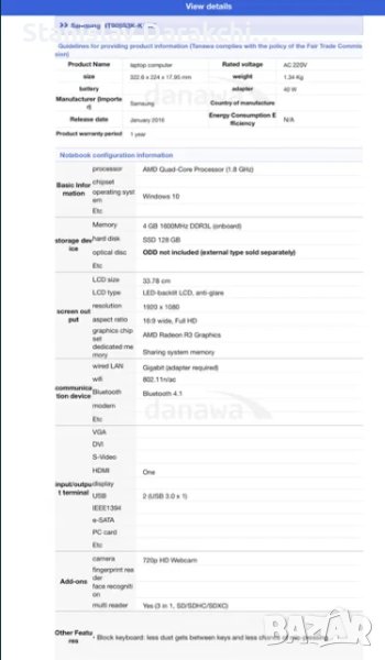 Оригинален Самсунг лаптоп от Корея с корейска клавиатура в зашеметяващ жълт цвят. Много лек и тънък, много ярки цветове на дисплея. AMD 4 ядра и Radeon R3 видеокарта. 4 гб рам и 128 гб ссд. Пълни спецификации на линка. В момента е с Линукс Минт
