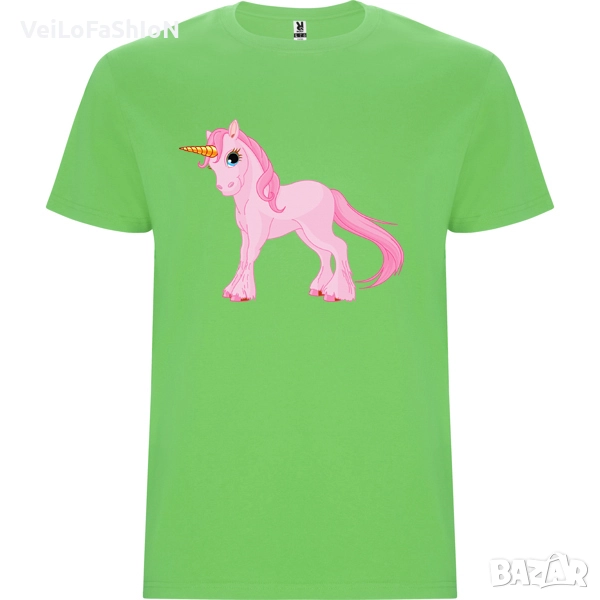 Новa детска тениска в бял, розов или зелен цвят с Еднорог, произведена от 100% памук с плътност на тениската 190гр./м². Тениската е с тънко деколте съдържащо ликра за по-добра здравина при обличане. Подходяща както за ежедневна употреба, така и за спорт или тренировка в свободното време.